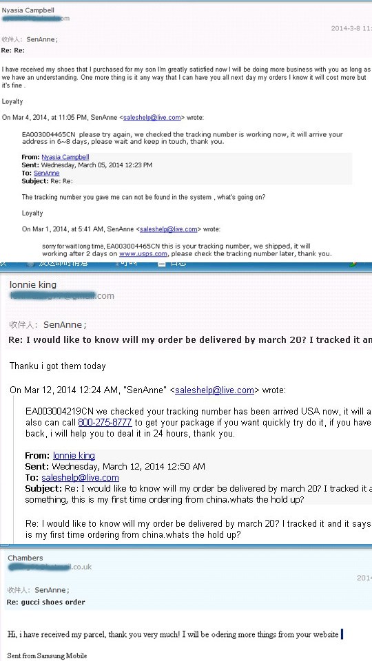 We do long business online more than 10 years and we got many praise from customers, every item we will check again when we ship to make sure the quality ok and you can contact us any times online about your order or your problem, we will deal it quickly for you. Those are others people chat and mail records with us.